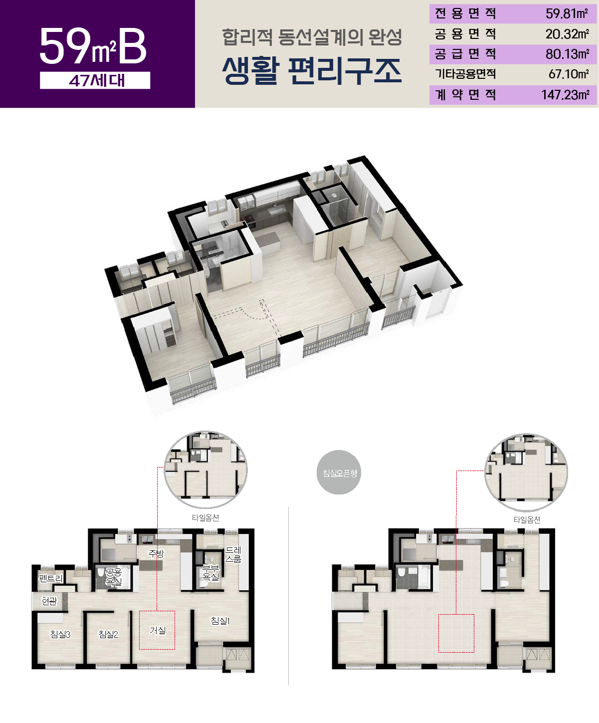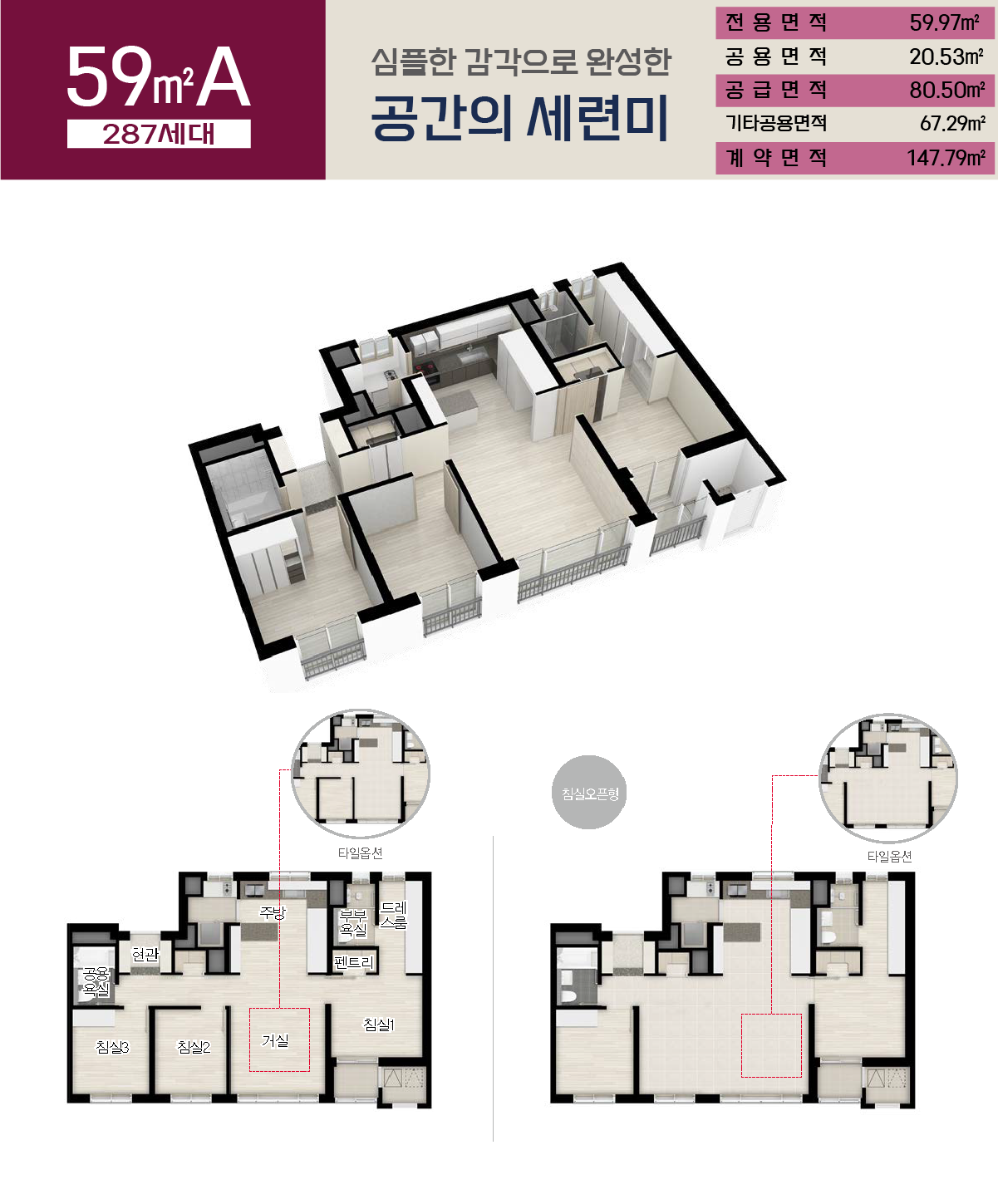 ※ 상기 평면도 및 아이소 이미지는 고객의 이해를 돕기 위해 제작된 것으로 외곽라인, 내부 레이아웃, 인테리어 마감, 디테일, 가구 디자인 등 세부사항은 변경될 수 있으니, 자세한 사항은 견본주택에서 직접 확인하시기 바랍니다.
